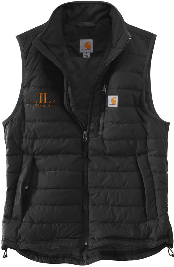 When it’s just cold enough to call for core warmth this insulated vest has you covered as a lightweight water-repellent layer.1.75-ounce 100% nylon Cordura shell Rain Defender durable water repellent Wind Fighter technology tames wind Nylon lining quilted to 100-gram polyester insulation Reverse coil center front zipper Zip-through cadet collar Left chest map pocket with reverse coil zipper Two hand pockets with hidden snap closures Two interior pockets: one zippered one hook and loop closure Drawcord adjustable hem Carhartt-strong triple-stitched main seams Drop tail Carhartt label sewn on chest pocket